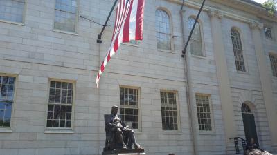 Harvard Universität mit dem Herrn Harvard vorne dran. Und natürlich einer rießen Flagge.